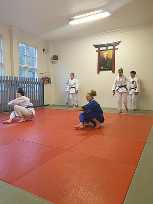 Bild 3 - Hans och kvinnliga träningskompisar hos JK Budo. Foto: Kurt Durewall