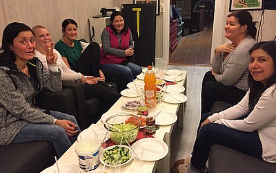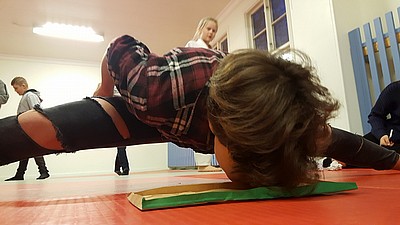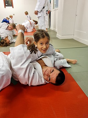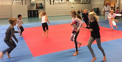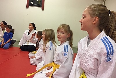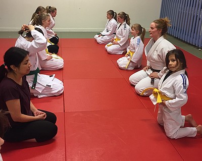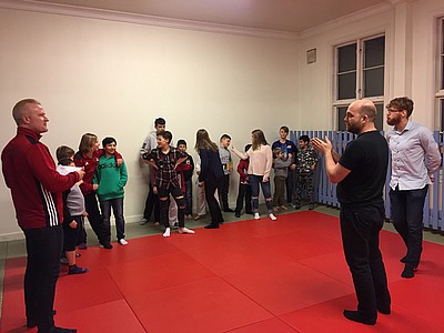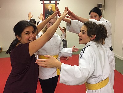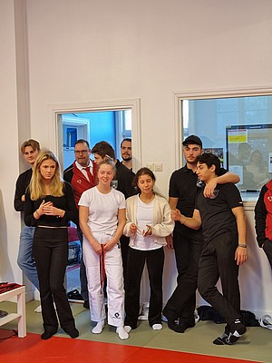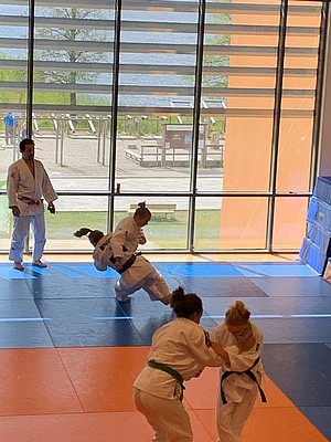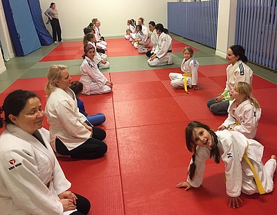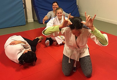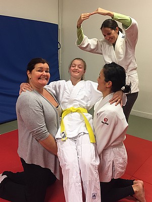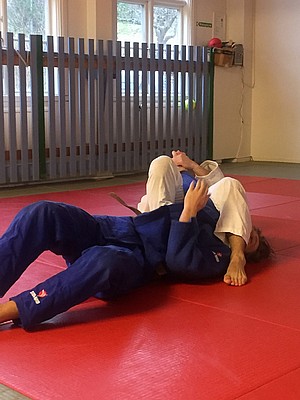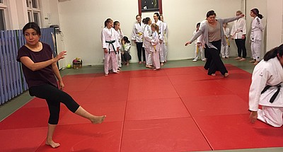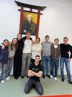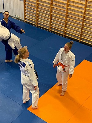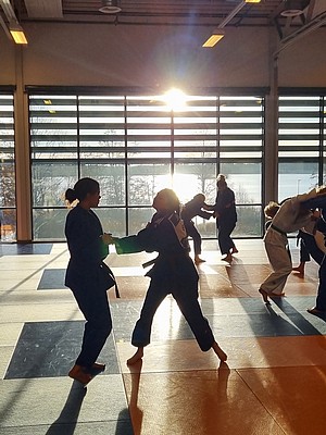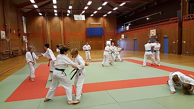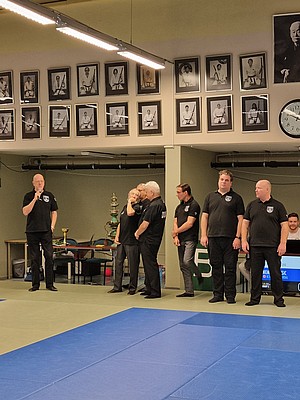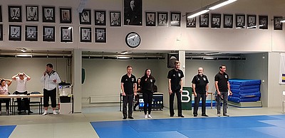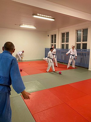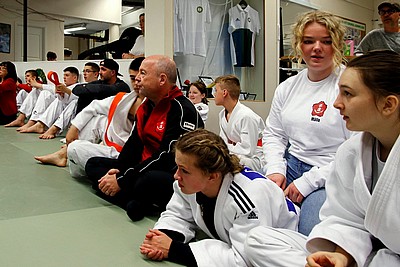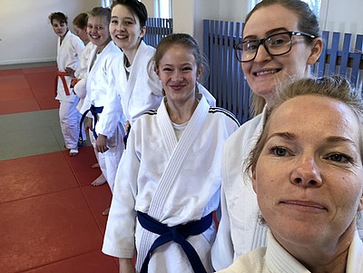 Bild 3 - Hans och kvinnliga träningskompisar hos JK Budo. Foto: Kurt Durewall