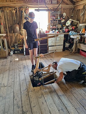 2021-06-06 Fånarna på FarmenLadda album (+83 bilder) >>Vår andra aktivitetsdag under den här grymma Budo-helgen tillägnade vi våra äldre medlemmar. Vi fick en fantastisk rolig dag tillsammans ute hos ”Fånarna på Farmen”. Det ligger i sköna Säve på Hisingen, inte långt från vår dojo. Det är som fångarna på fortet som man ser på TV men i lantlig miljö.